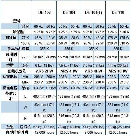 产品介绍 DE-100是ARS生产的单级制冷机,可达到25K低温,在77-150K制冷量最多。 特点: ● 无液氦 ● 振动低 ● 可靠性高 ● 维护容易 ● 价格优势 ● 更安静 标准组成: ● 冷头(DE-102F,DE-104F,DE-100F) ● 压缩机(ARS-2HW,ARS-4HW,ARS-10HW) ● 2根柔性高压氦气传输管 规格: