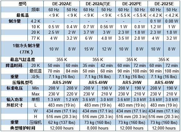产品介绍 DE-202型闭循环制冷机是紧凑型制冷机,它具有轴对称结构,尺寸小,质量轻。它特别适合机械操纵器和测角仪应用。这款制冷机是冷却低热负荷的小样品的理想选择。 DE202制冷机有5种不同结构可选,并可接受定制 特点: • 无液氦 • 振动低 • 可靠性高 • 维护容易 • 价格合理 • 更安静 标准组成: • 冷头(DE-202AF) • 压缩机(ARS-2HW) • 2根柔性高压氦气传送管 选件及升级: • 4K冷头(0.1W@4.2K) • 5.5K冷头(1W@10K) 规格: