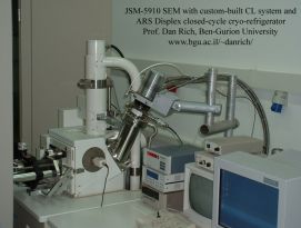 上图展示了Displex和它的界面。照片中所有不锈钢的部分都是对我们的JSM-5910扫描电镜的升级。请注意我的网站上发表的论文,其中演示了用这个低温系统获得的CL的结果。 样品温度介于40 K和50 K之间。 Prof. Dan Rich 以色列比尔舍瓦本古里安大学 |