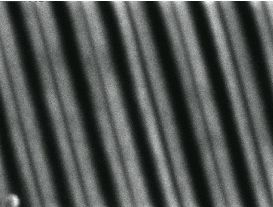 上图为生长在带图案的GaN衬底上的InGaN/GaN量子阱. 该图案由周期为10微米的条纹组成。 采用390 nm检测波长拍摄的单色CL图像(Mag. 2000)。 室温和50K的图像质量对比表明振动小于10nm。 |